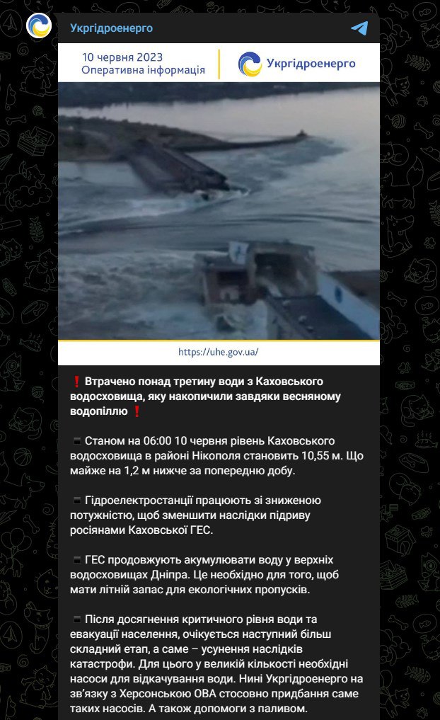 Из Каховского водохранилища на данный момент потеряно более трети воды, гидроэлектростанции работают с пониженной мощностью.