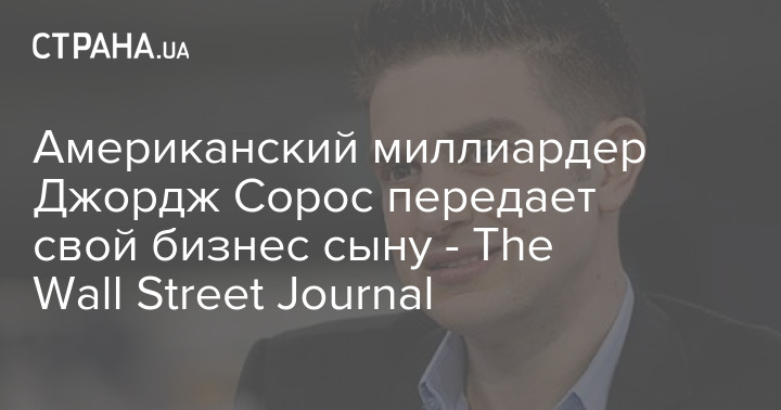 Американский миллиардер Джордж Сорос передает свой бизнес сыну - The Wall Street Journal