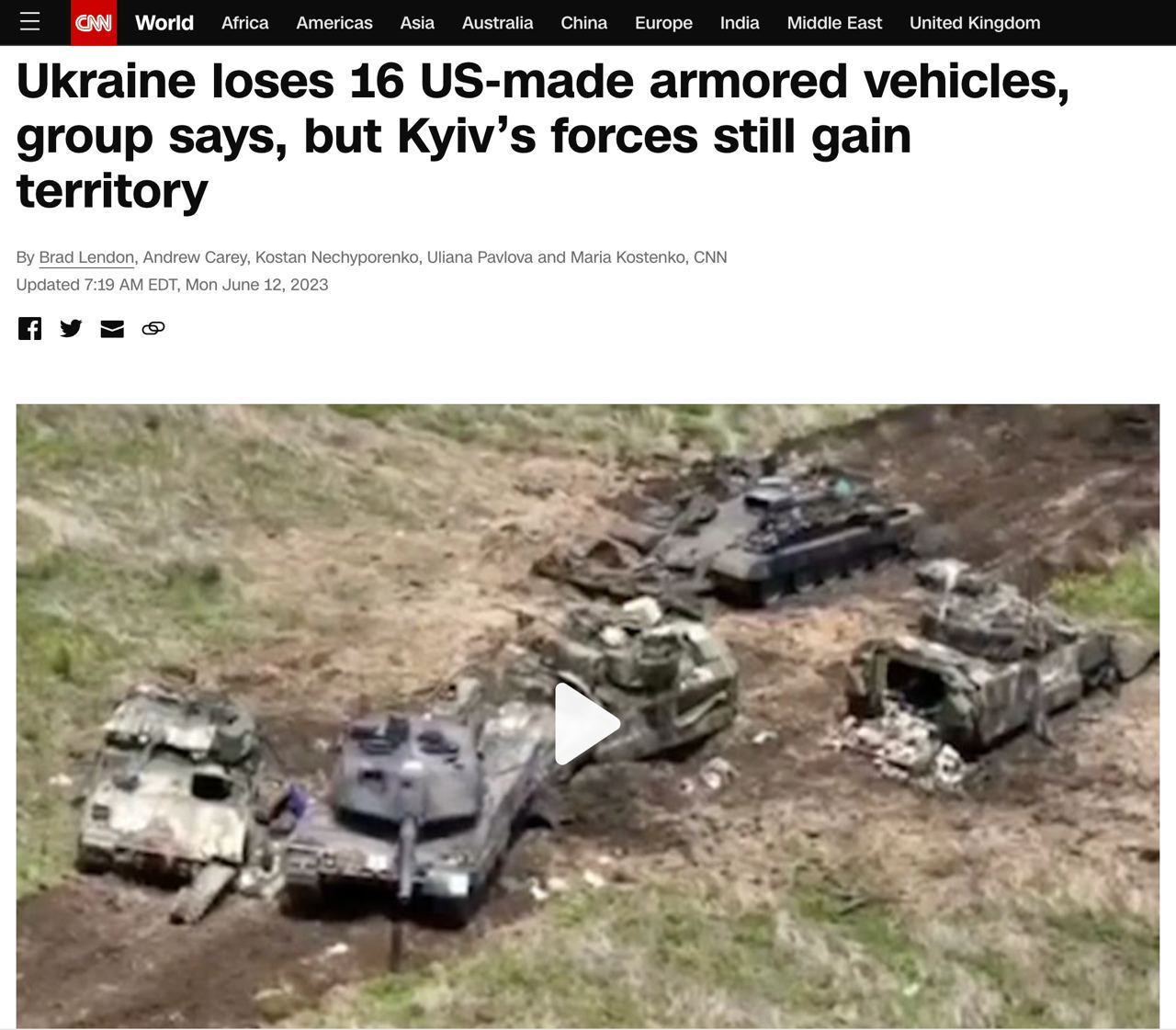23.19 Пентагон пока не может подтвердить все видео и фотоматериалы об уничтожении американской техники, в частности, 16 бронемашин Bradley, в ходе украинского контрнаступления.