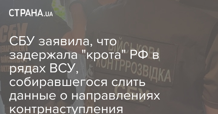 Служба безопасности Украины задержала российского "крота" в рядах ВСУ, который, по данным следствия, планировал передать РФ информацию о направлениях украинского контрнаступления.