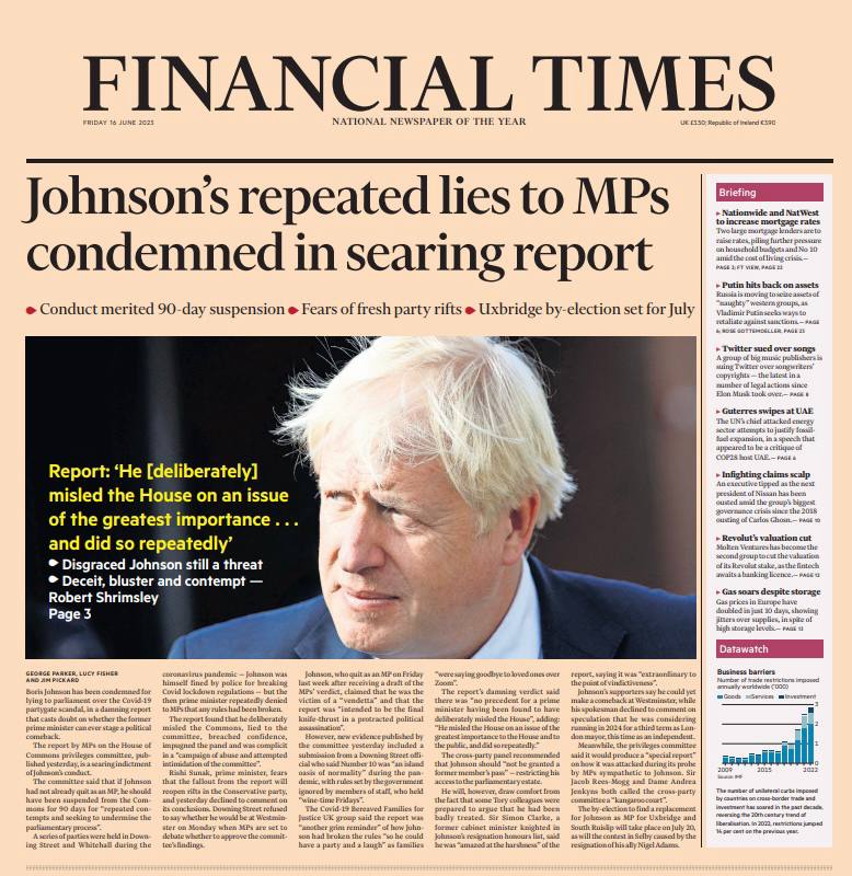 Британская пресса устроила настоящую обструкцию бывшему премьеру Борису Джонсону. "Лжец", "Он врал, и врал, и врал" - такие заголовки вышли на обложках СМИ.