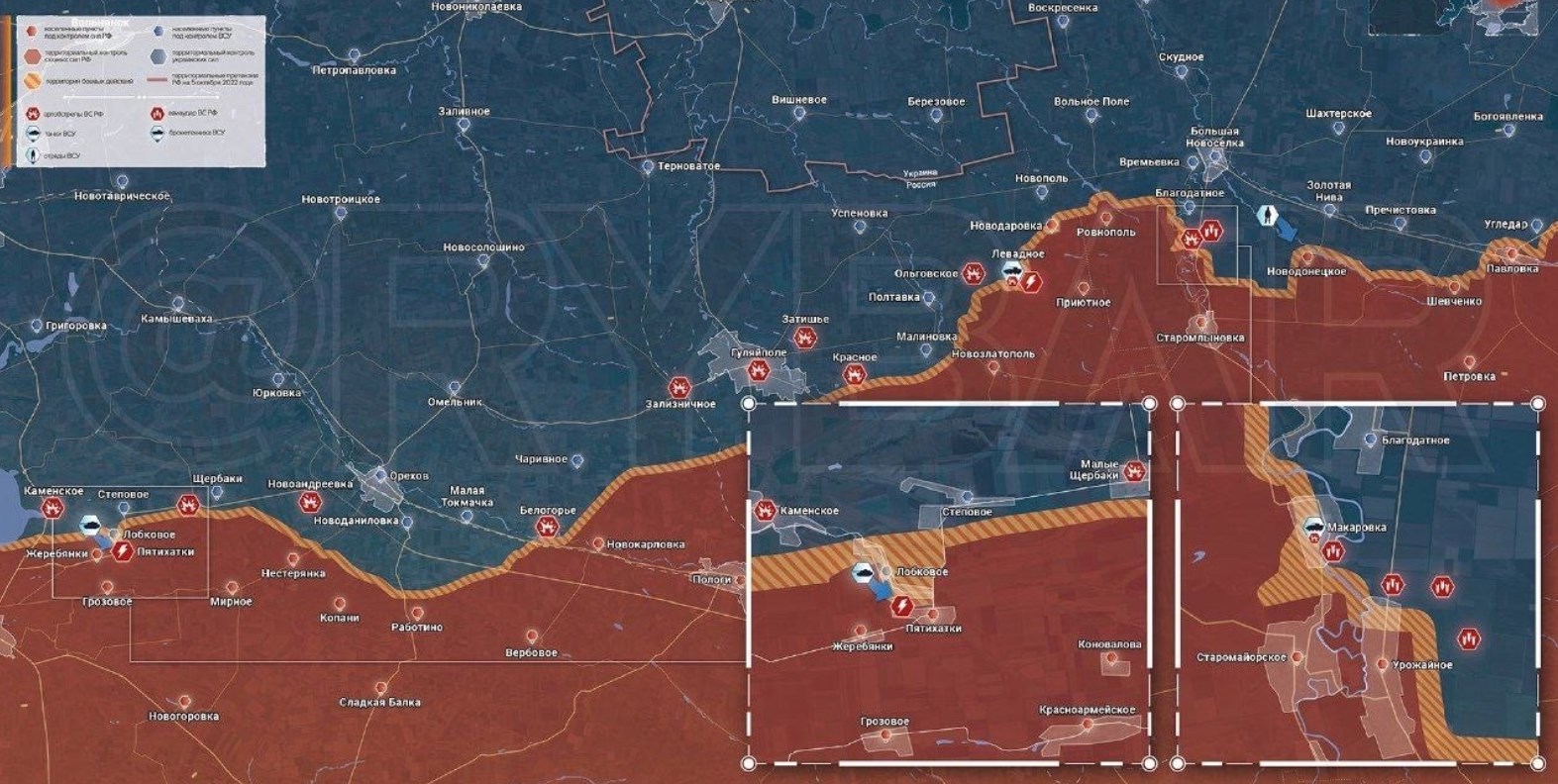 Российские телеграм-каналы сообщали, что украинские силы предприняли атаку на Пятихатки, которая якобы отбита (по другим данным, бои продолжаются на окраинах Пятихаток).