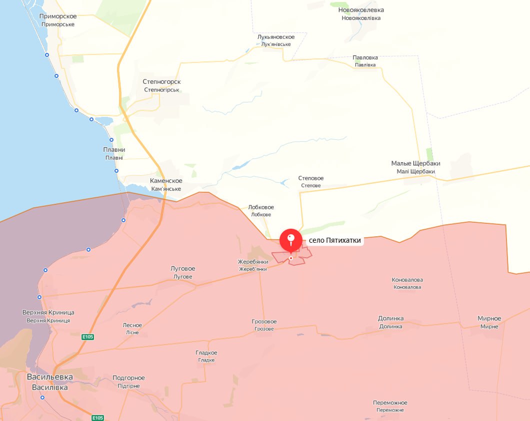 Во-первых, в районе села Пятихатки (направление от Орехова) куда, по утверждению российских пабликов, вошли украинские войска.
