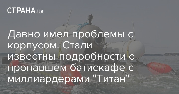 Давно имел проблемы с корпусом. Стали известны подробности о пропавшем батискафе с миллиардерами "Титан"