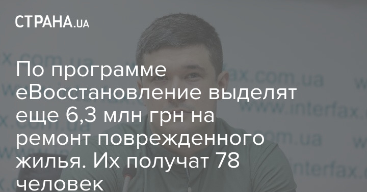 По программе еВосстановление будет выделено еще более 6,3 млн гривен на ремонт поврежденного жилья.