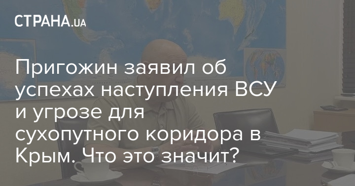 Сегодня куратор ЧВК "Вагнер" Евгений Пригожин заявил, что украинское наступление на юге развивается успешно, россияне уже потеряли "огромные территории" и есть угроза потери сухопутного коридора в Крым, а затем и самого полуострова.