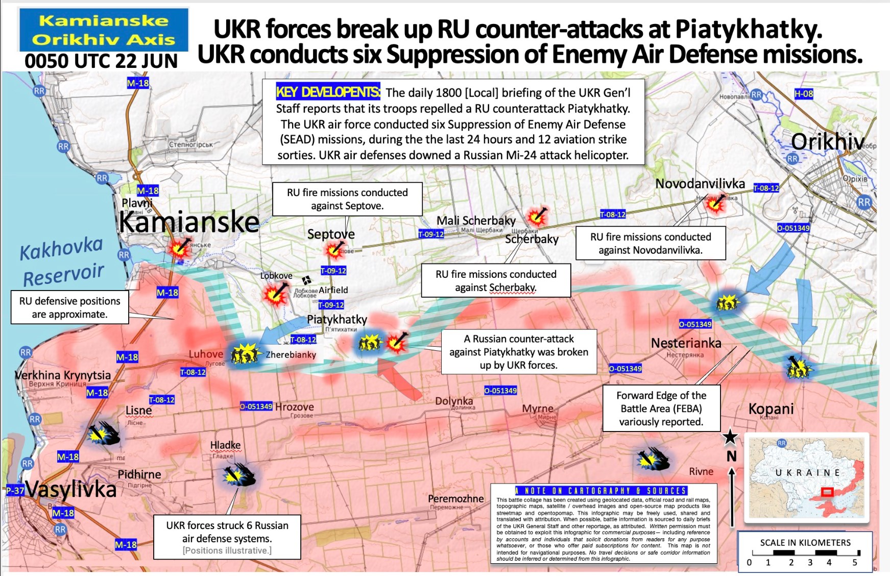 Генштаб также в своих сводках пишет о контратаках россиян в районе Пятихаток.