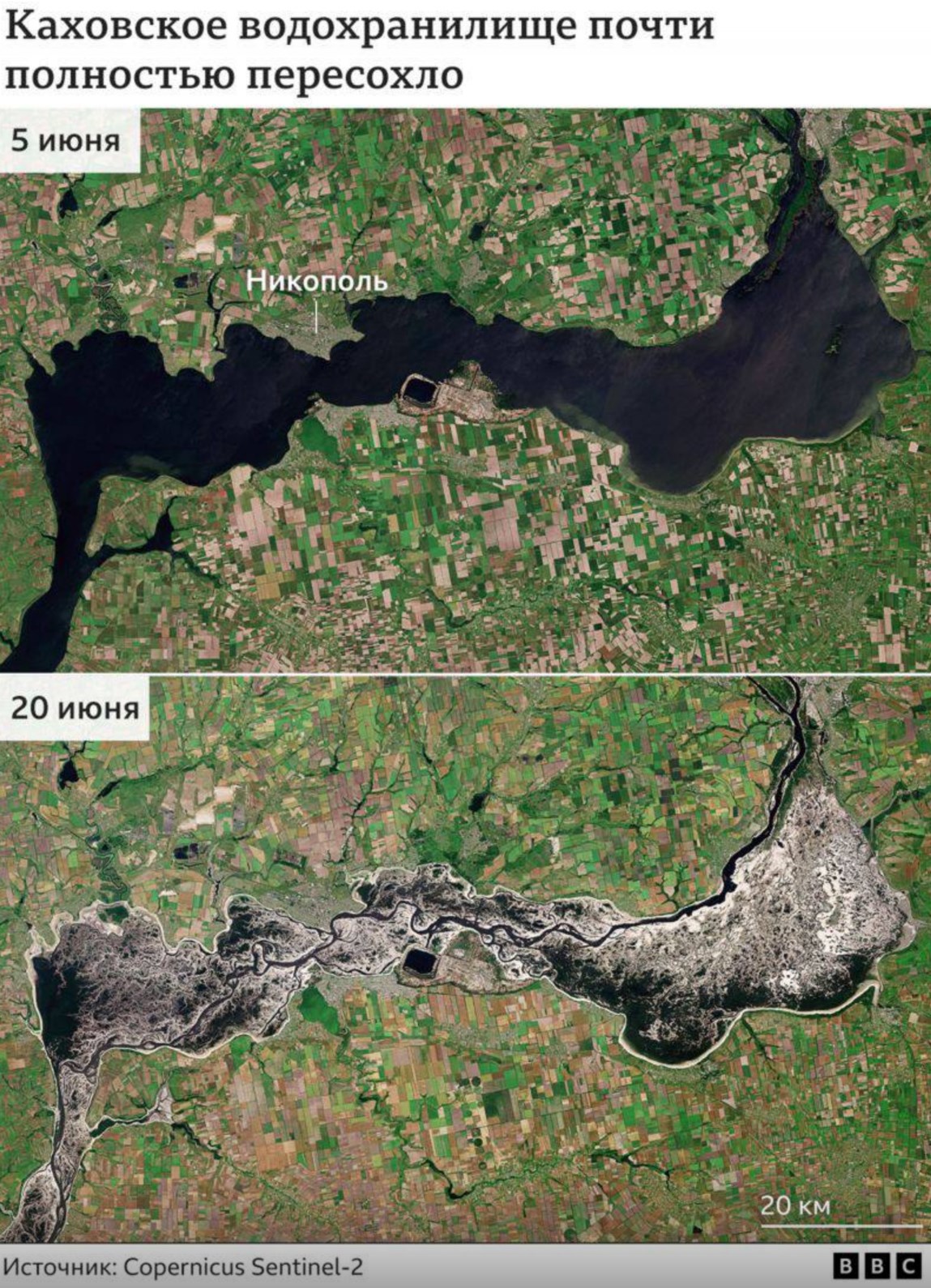 Российские телеграм-каналы тем временем пишут о том, что на дне обнаружилась старая дорога от Энергодара до Никополя, по которой в теории может пройти военная техника. Этого можно якобы ждать через 3-4 дня, когда дно еще сильнее просохнет.