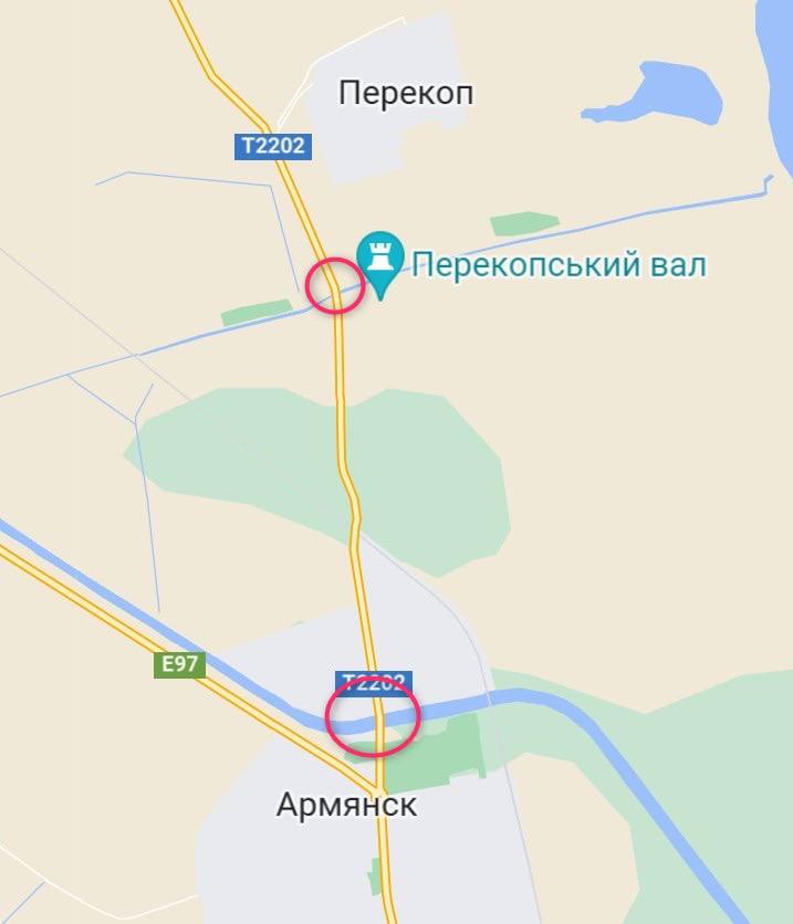 Сегодня был создан новый прецедент в этой войне - нанесен удар по двум мостам через Чонгар на въезде в Крым. В связи с чем российские "власти" направили автомобильный поток через Армянск. Это крюк примерно в 150 километров.