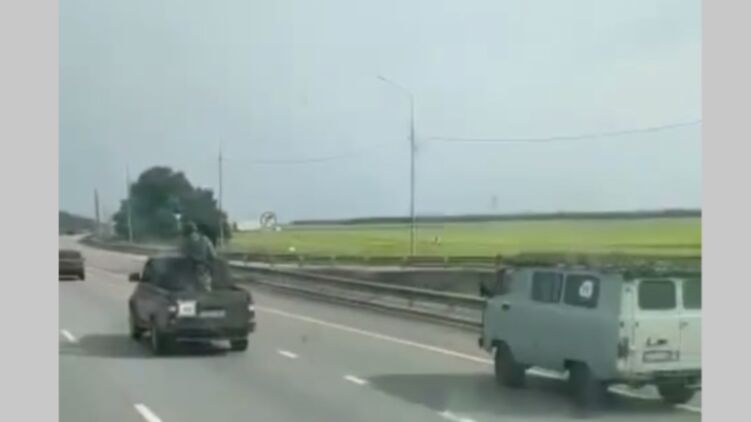 На кадрах можно заметить продвижение по трассе военных машин, в которых находятся вооруженные наемники.
