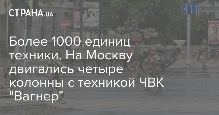Вчера во время "пригожинского" мятежа в направлении Москвы двигались четыре колонны с техникой ЧВК "Вагнер", которые суммарно насчитывали более 1000 единиц техники: танки, БМП, РСЗО, грузовики, автобусы и легковушки.