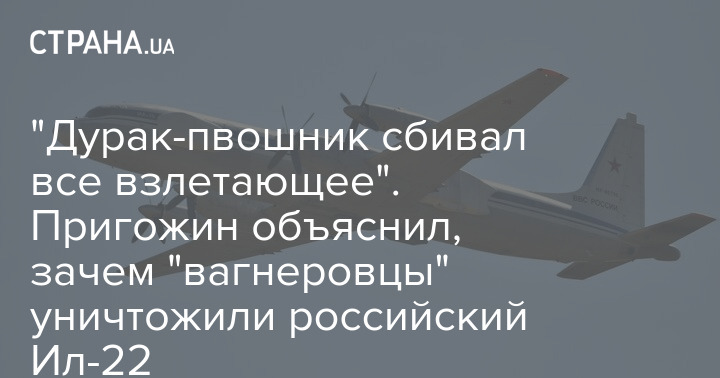 "Дурак-пвошник сбивал все взлетающее". Пригожин объяснил, зачем "вагнеровцы" уничтожили российский Ил-22