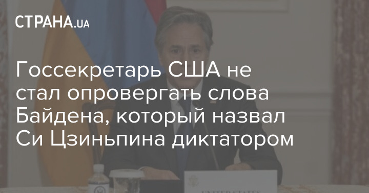 Госсекретарь США Энтони Блинкен не стал опровергать слова американского президента Джо Байдена, который на днях назвал диктатором председателя КНР Си Цзиньпина.