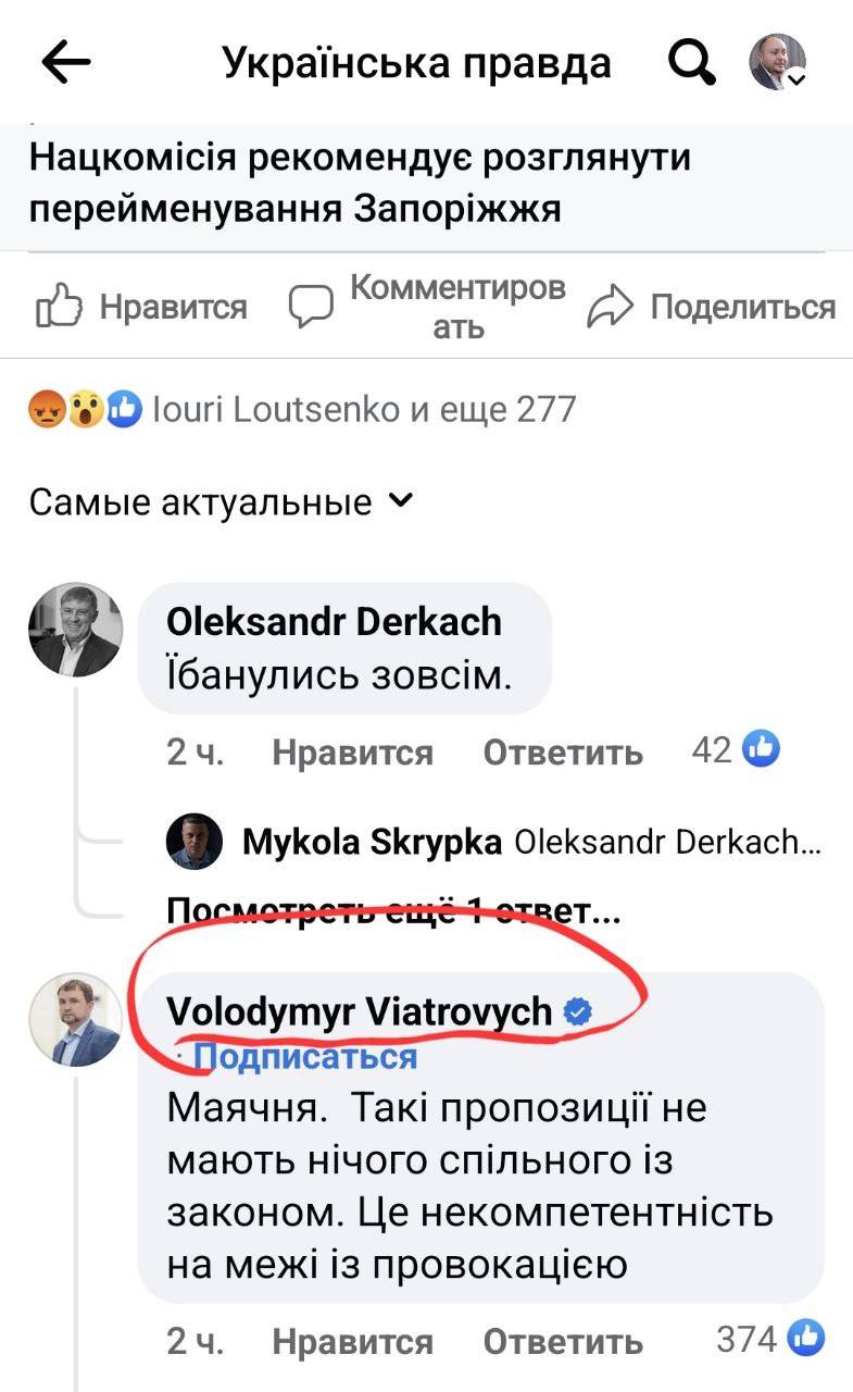 "Бред. Такие предложения не имеют ничего общего с законом. Это некомпетентность на грани провокации", - написал в комментариях на Фейсбуке Владимир Вятрович.