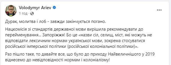 Он предложил все, что было до прихода Величайшего в 2019 году (то есть Владимира Зеленского), отнести к несоответствию нормам и колониализму.