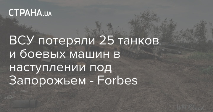 Журнал Forbes утверждает, что 8 июня в наступлении под Малой Токмачкой в Запорожской области ВСУ потеряли 25 танков и боевых машин.