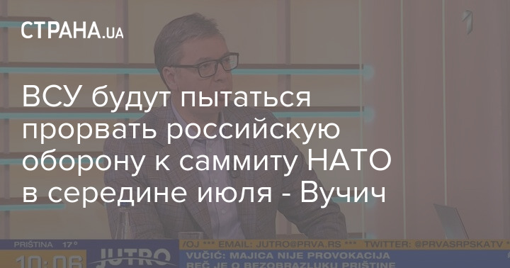 ВСУ будут пытаться прорвать российскую оборону к саммиту НАТО в середине июля - Вучич