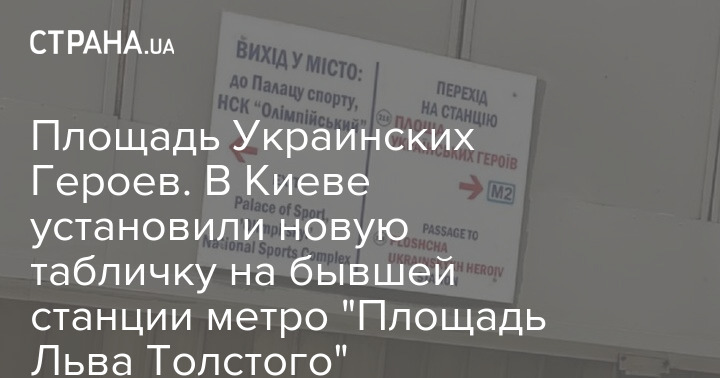 В Киеве уже сменили табличку на переименованной станции метро "Площадь Льва Толстого". Теперь она называется "Площадь Украинских Героев".