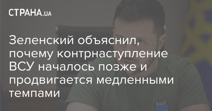 По словам Зеленского, из-за более позднего начала контрнаступление ВСУ продвигается медленнее, чем могло бы.