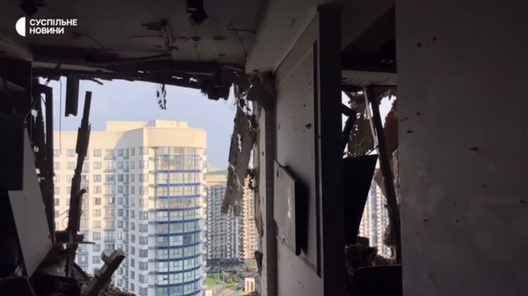 В Дарницком районе Киева обломок сбитого беспилотника повредил квартиру на 25 этаже высотки.