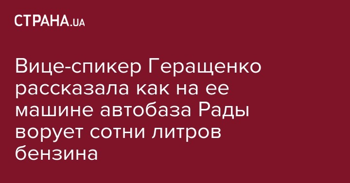 Вице-спикер Верховной Рады Ирина Геращенко рассказала, что на закрепленной за ней служебной машине списывают сотни литров бензина. Об этом она рассказала в Facebook.