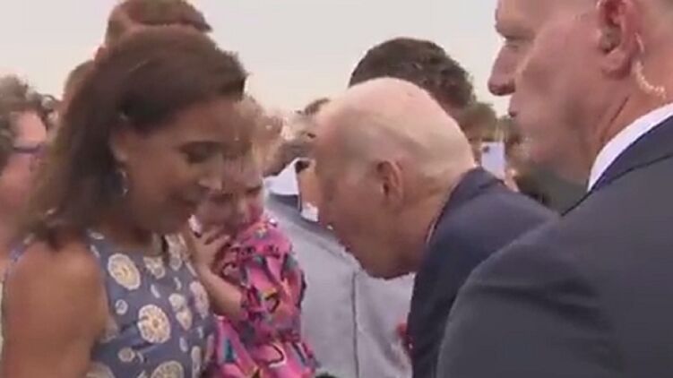 Судя по видео в сети, он подошел близко к малышке в цветном сарафане, которую на руках держала женщина, и сделал вид, что кусает ее. Ребенок начал уворачиваться от Байдена и скривился. Мама попыталась запечатлеть знакомство с президентом США на видео, но увидев реакцию дочери, перевела все в шутку.