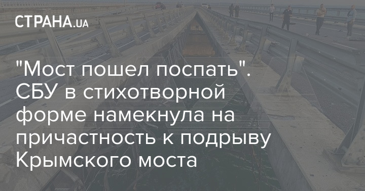 Служба безопасности Украины (СБУ) в стихотворной форме намекнула на свое участие в новом подрыве Крымского моста.