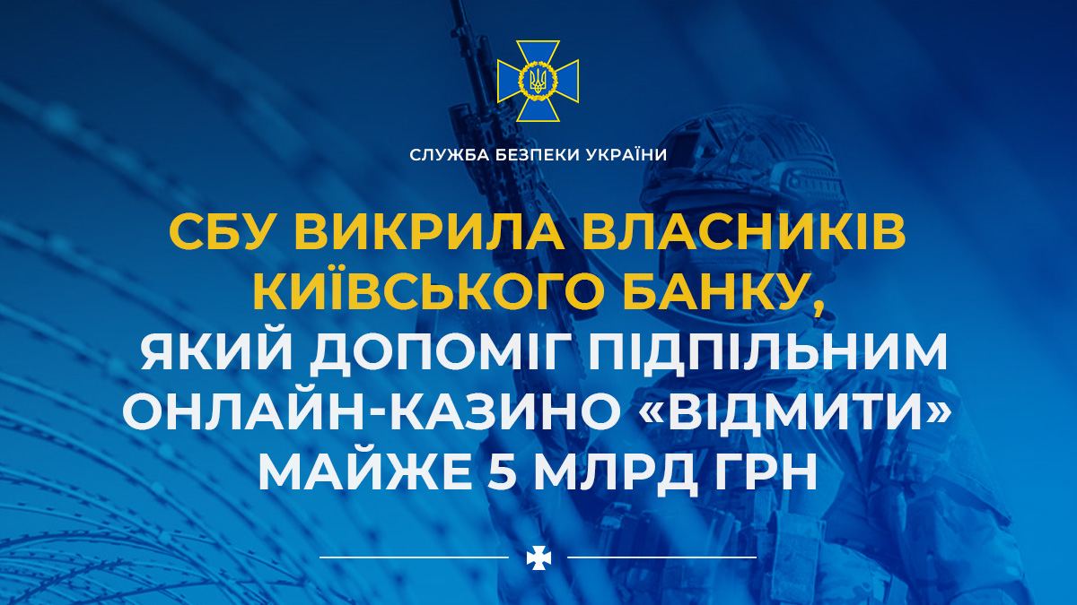 Служба безопасности Украины вместе с Бюро экономической безопасности разоблачила владельцев киевского банка, который помог подпольным онлайн-казино "отмыть" почти 5 млрд грн.