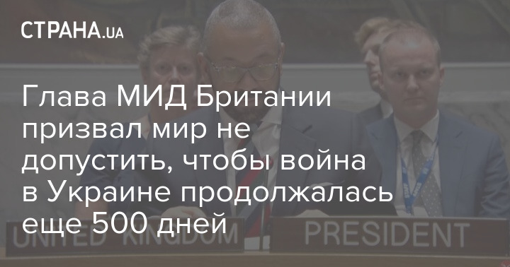 Мир не может допустить, чтобы война в Украине продолжалась еще 500 дней. Об этом заявил глава МИД Британии Джеймс Клеверли во время заседания Совбеза ООН.