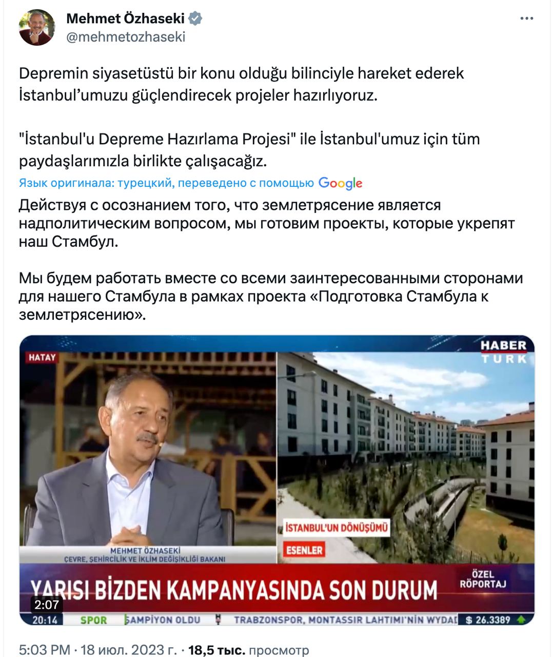 Власти страны уже начали подготовку Стамбула к возможному инциденту, сообщил министр экологии и градостроительства Мехмет Озхасеки.