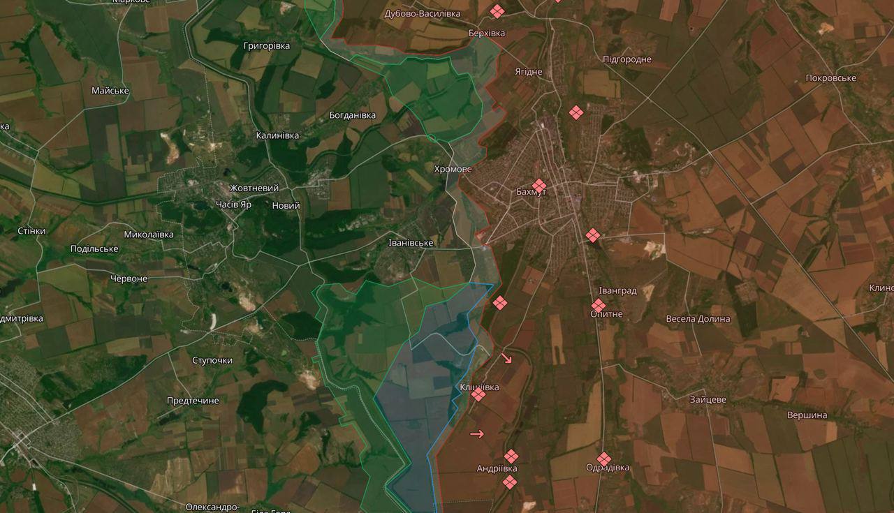 Отметим, что, судя по карте, опубликованной украинским военным телеграм-каналом DeepState, Бахмут сейчас не находится в полуокружении. И на флангах к юго-западу и к северо-западу от города все ещё продолжаются бои.