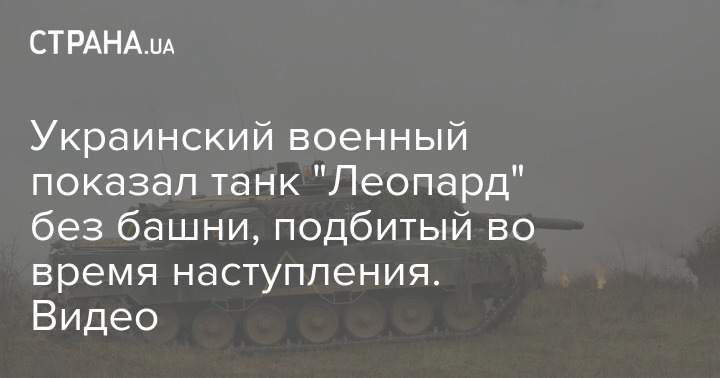 Украинский военный показал танк "Леопард" без башни, подбитый во время наступления. Видео