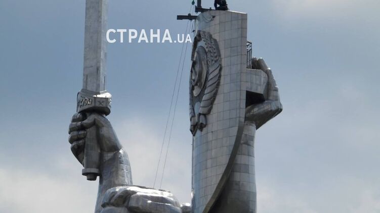В киевском парке Славы начались подготовительные работы по установке тризуба вместо советского серпа и молота на щите монумента "Родина-мать".