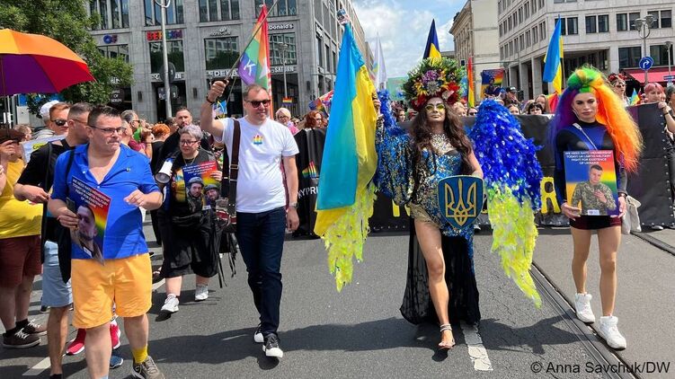 Украинская колонна прошла по улицам Берлина под девизом "Будь горд, как Украина" ("Be Pride Like Ukraine"). Люди шли с флагами Украины и ЛГБТ-движения, в национальных костюмах, выкрикивая лозунги: "Война не окончена", "Слава Украине".