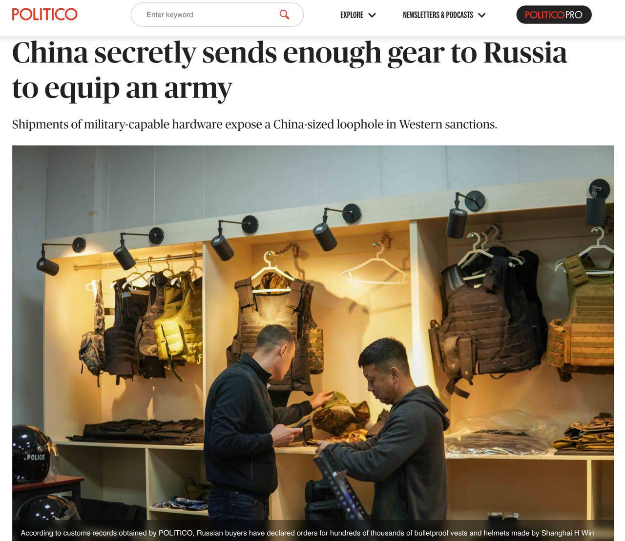 Китай тайно отправляет России снаряжение в объеме, "достаточном для оснащения армии".