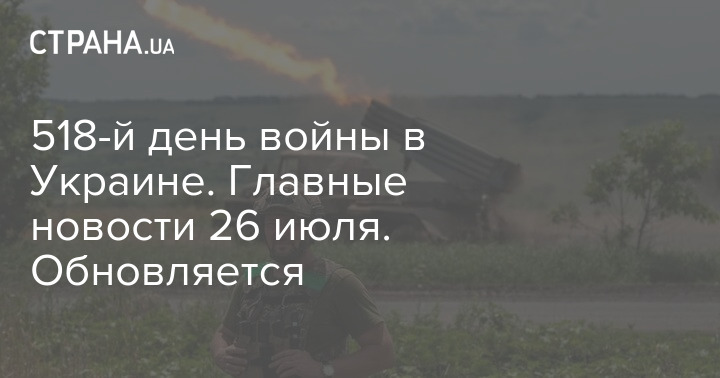 В среду, 26 июля, в Украине идет 518-й день войны с Россией.