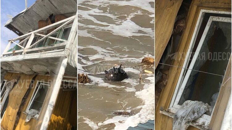 Местные паблики уточняют, что одну мину прибило в селе Вапнярка. Взрывом повредило жилой дом. На видео еще одна мина качается на волнах на берегу.