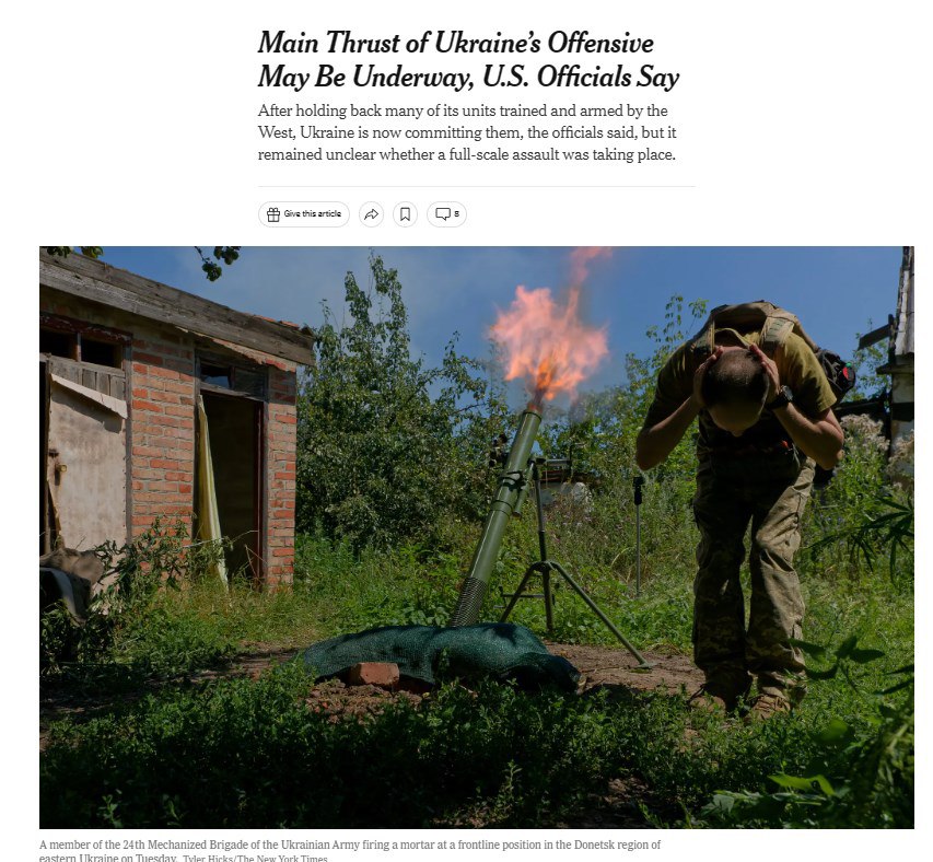 И еще одна статья в западном СМИ о начале крупного наступления Украины на юге.
