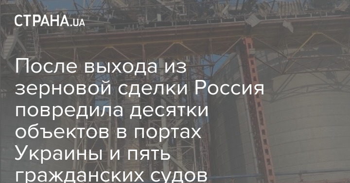 За последние девять дней после выхода из "зерновой сделки" Россия обстрелами повредила и частично уничтожила 26 объектов портовой инфраструктуры Украины и пять гражданских судов.