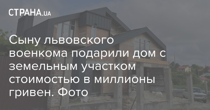 Сын львовского военкома, 27-летний Владислав Дубовой получил в подарок недостроенный дом с готовностью на 95% и площадью почти 640 кв. метров вместе с приусадебным участком в 0,09 га в Брюховичах.
