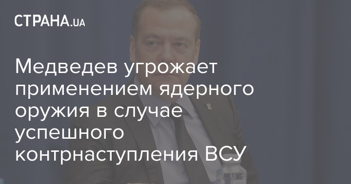 Зампред Совбеза РФ Дмитрий Медведев заявил, что если контрнаступление ВСУ будет успешным, РФ может применить ядерное оружие.