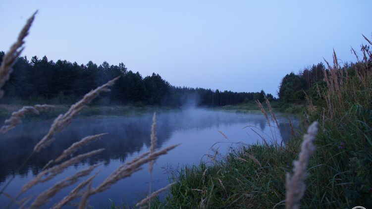На одном из них фотограф запечатлел тихую ленту реки, окутанной легким речным туманом, в обрамлении трав и лесных деревьев.