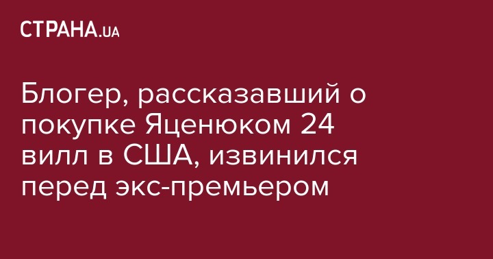 Блогер Олег Торгало, который рассказал о риобретении экс-премьер-министром Украины Арсением Яценюком 24 вилл в Майами, извинился перед политиком за недостоверную информацию. Об этом пишет "Обозреватель".