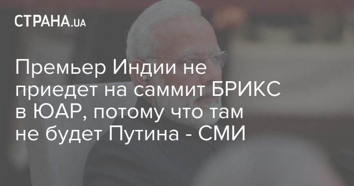 Премьер Индии не приедет на саммит БРИКС в ЮАР, потому что там не будет Путина - СМИ