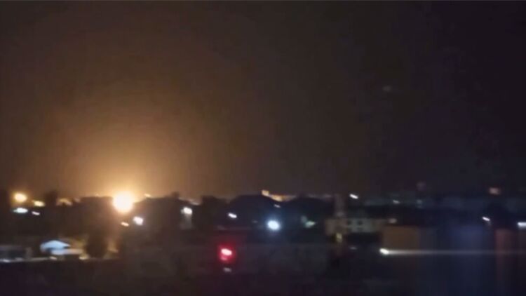На видео можно заметить вспышку взрыва после работы ПВО.