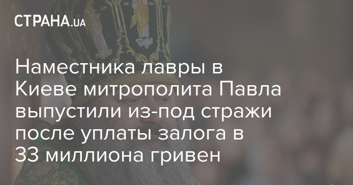 Напомним, в середине июля Соломенский районный суд Киева удовлетворил ходатайство прокуроров об изменении меры пресечения наместнику Киево-Печерской лавры митрополиту Павлу с круглосуточного домашнего ареста на содержание под стражей с возможностью внесения залога в размере 33 миллиона гривен. Митрополит Павел тогда заявил, что с решением суда об изменении его меры пресечения не согласен и что у него нет таких денег, чтобы внести залог.