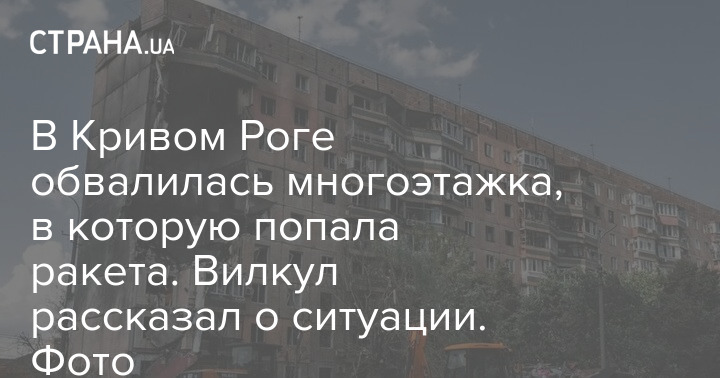 Сегодня в Кривом Роге произошёл обвал многоэтажного дома, в который попала российская ракета 31 июля.