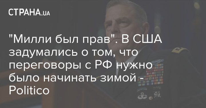 Напомним, в ноябре 2022 года генерал заявлял, что зимой отроется "окно" для переговоров, потому что линия фронта стабилизируется, а победа Украины или России скорее всего уже "недостижима военными средствами". Милли тогда призвал "ловить момент" для дипломатии.