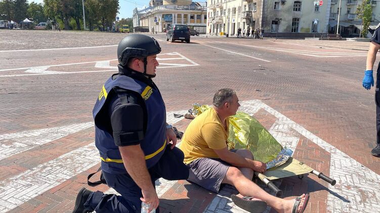 Уже известно о пяти погибших после удара по центру Чернигова. Фото: МВД