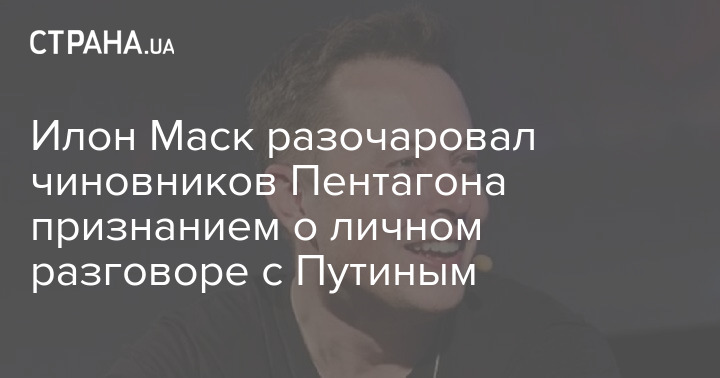 Издание пишет, что к разочарованию чиновников Пентагона Маск заявил, что общался с Путиным лично.
